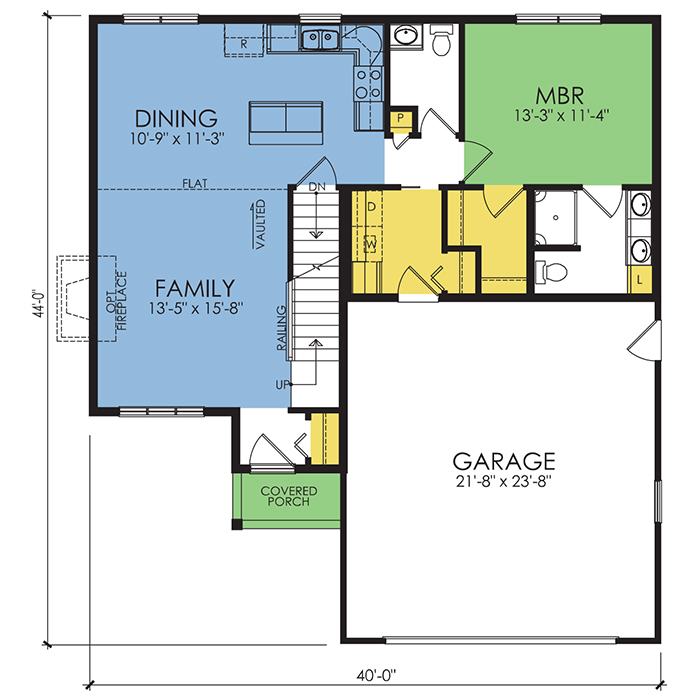 A part of our dream series, the tamarack floor plan features 3 bedrooms and 1.5 bathrooms with a foot print of 44x30 feet and 1342 total square feet of living space.