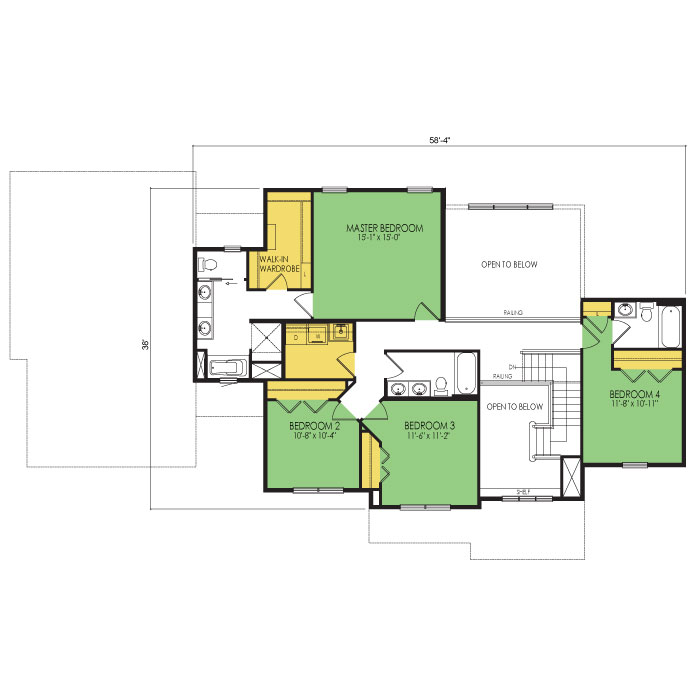 A part of our Designer Series, the Highland Woods floor plan features 4 bedrooms and 3.5 bathrooms with a foot print of 80x38 feet and 3019 total square feet of living space. Floor Plan #DT264