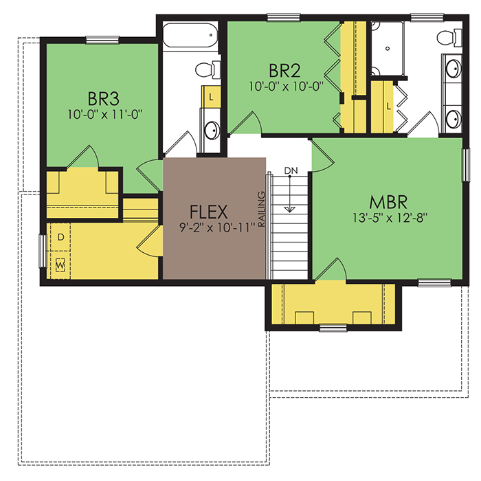 A part of our dream series, the tamarack floor plan features 3 bedrooms and 1.5 bathrooms with a foot print of 44x30 feet and 1342 total square feet of living space.