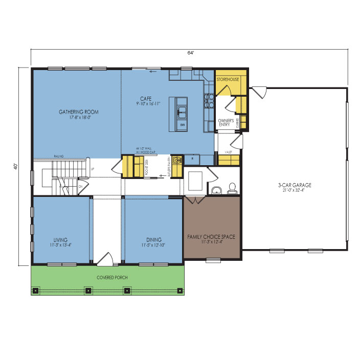 A part of our designer series, the quail hollow floor plan features 4 bedrooms and 3.5 bathrooms with a foot print of 64x40 feet and 2984 total square feet of living space. Floor Plan #DT282