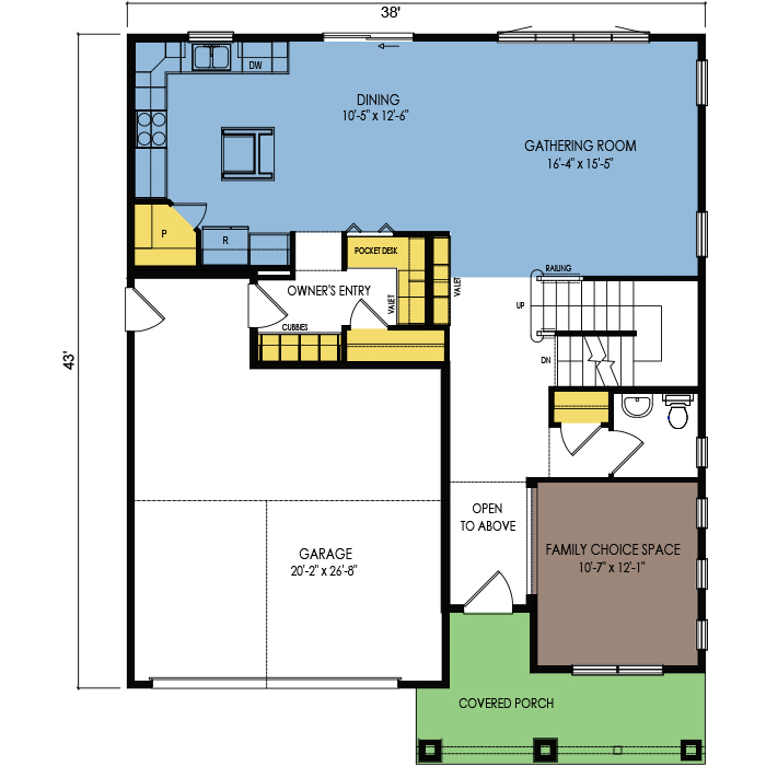 A part of our Family Series, the Wrangell floor plan features 4 bedrooms and 2.5 bathrooms, a 2 car garage, 2 stories, a footprint of 38x43 feet, and 2549 total square feet of living space. Floor Plan #FM267